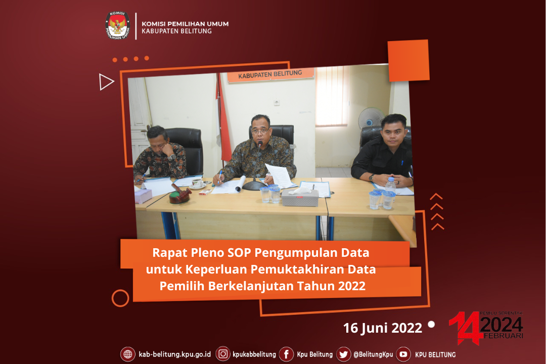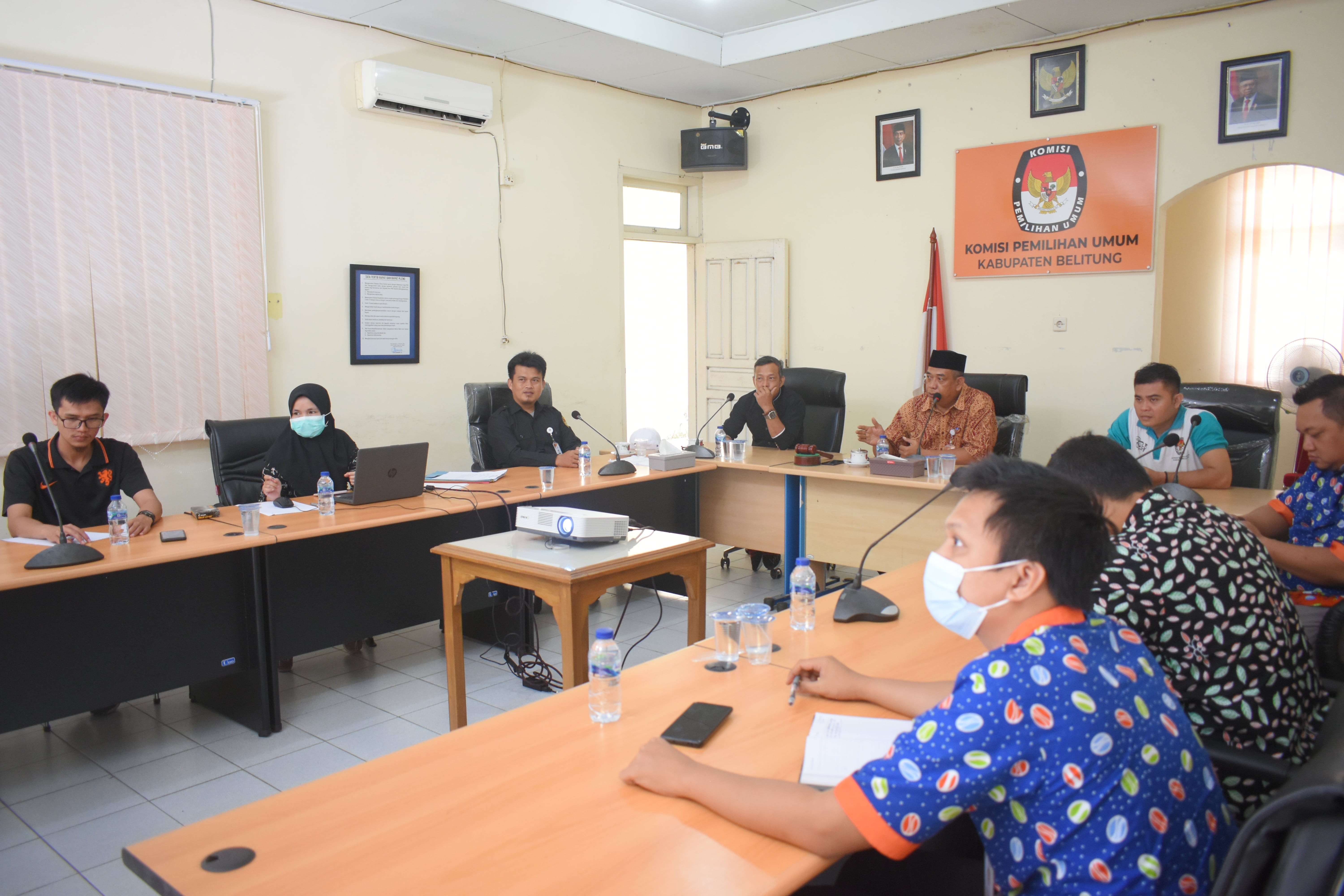 kab-belitung.kpu.go.id, Tanjungpandan - Komisi Pemilihan Umum (KPU) Kabupaten Belitung menggelar Rapat Kerja dalam rangka Pemutakhiran Data Pemilih pada KPU Kabupaten Belitung bertempat di ruang rapat KPU Kabupaten Belitung, Selasa (21/06). Acara rapat yang dipimpin oleh Ketua KPU Kabupaten Belitung ini, dihadiri oleh seluruh Anggota, Plt. Sekretaris, Kepala Sub Bagian (Kasubbag) serta staf pelaksana Sekretariat KPU Kabupaten Belitung. Acara rapat dibuka oleh Ketua KPU Kabupaten Belitung, Soni Kurniawan, SH. Dalam sambutannya Ketua KPU Kabupaten Belitung memberikan pengarahan terkait proses pemutakhiran data pemilih sesuai Surat Edaran Ketua Komisi Pemilihan Umum Republik Indonesia (RI) Nomor 17 Tahun 2022 tentang Tindak Lanjut Hasil Pemadanan Data Pemilih Berkelanjutan Semester II Tahun 2021 Komisi Pemilihan Umum dengan Data Kependudukan Kementerian Dalam Negeri Republik Indonesia. Rapat kemudian dilanjutkan dengan pemaparan oleh Anggota KPU Kabupaten Belitung Divisi Perencanaan, Data dan Informasi (Perdatin), Muhammad Fauzi, S.HI. terkait langkah-langkah yang telah dilaksanakan divisi dan poin-poin penting dari Surat Edaran KPU RI No 17 Tahun 2022. Yang kemudian dilanjutkan dengan penjelasan dari Kasubbag Program dan Data Zuhri Wahyudi, A.Md tentang progress pemutakhiran data pemilih berkelanjutan sampai dengan saat ini. Usai pemaparan dari divisi Perdatin, acara rapat dilanjutkan dengan sesi diskusi dengan seluruh peserta rapat. Acara rapat kemudian ditutup oleh Ketua Komisi Pemilihan Umum Kabupaten Belitung Soni Kurniawan, SH(wpdm)