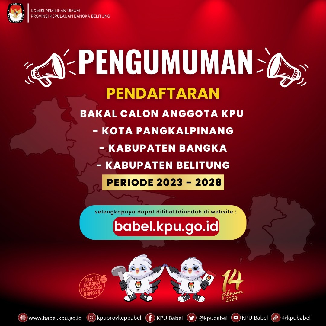 #SeperadikPemilih, Berikut Pengumuman tentang Pendaftaran Bakal Calon Anggota KPU Kota Pangkalpinang, Kab. Bangka, Kab. Belitung Periode 2023-2028.