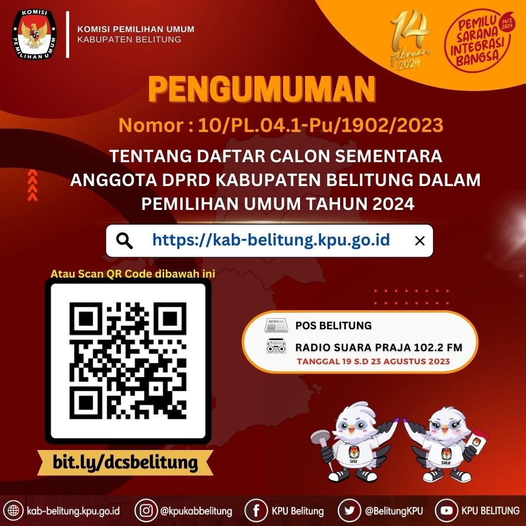#kpumelayani, Berikut Pengumuman tentang Daftar Calon Sementara (DCS) Anggota DPRD Kabupaten Belitung dalam Pemilu Tahun 2024.