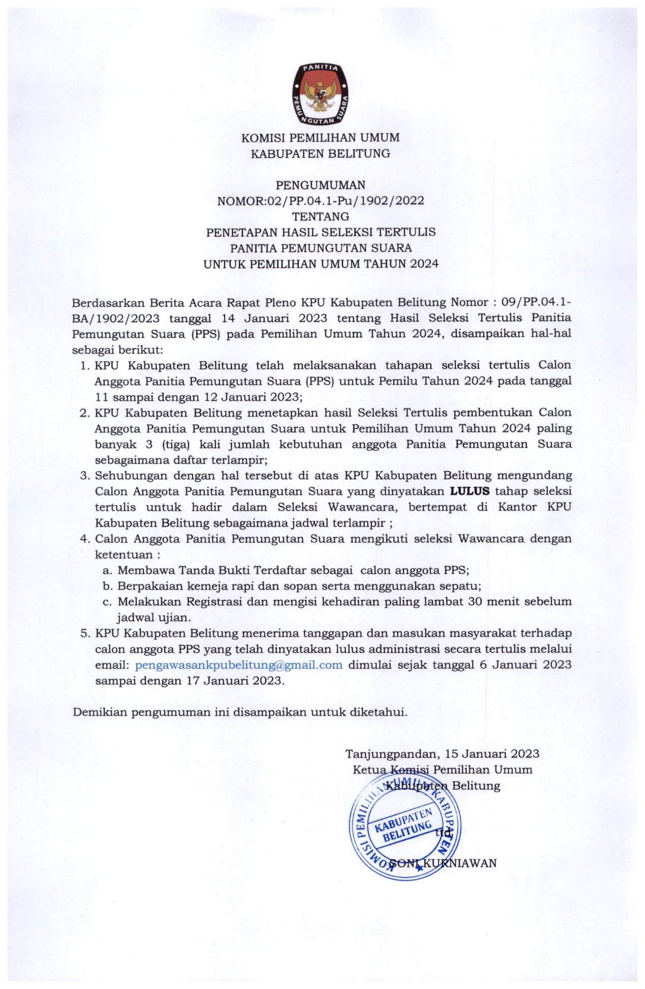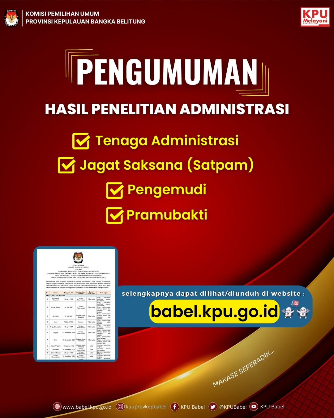 #SeperadikPemilih, Berikut Pengumuman Hasil Penetapan Penelitian Administrasi untuk jabatan Tenaga Administrasi, Satpam (Jagat Saksana), Pengemudi dan Pramubakti Tahun Anggaran 2023.
